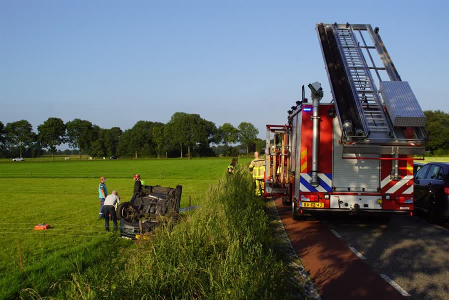 De brandweer heeft in samenwerking met omstanders een vrouw uit de auto die op de kop eindigde gehaald. Zij is met onbekende verwondingen overgebracht naar het ziekenhuis. De andere bestuurder kon zelf uit de auto komen en raakte niet gewond.