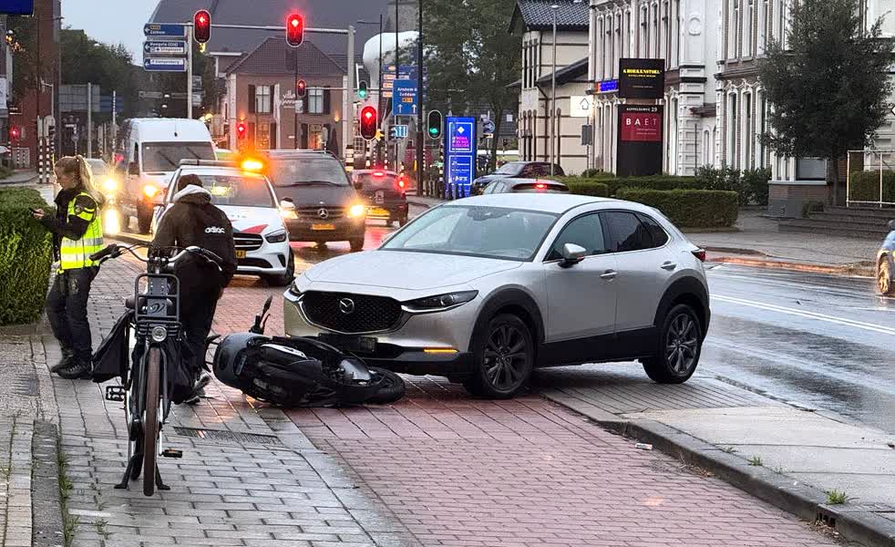 Bij een ongeval op de Keppelseweg in Doetinchem zijn dinsdagochtend een auto en een scooter met elkaar in botsing gekomen. Mogelijk zag de automobilist de scooterrijder over het hoofd.