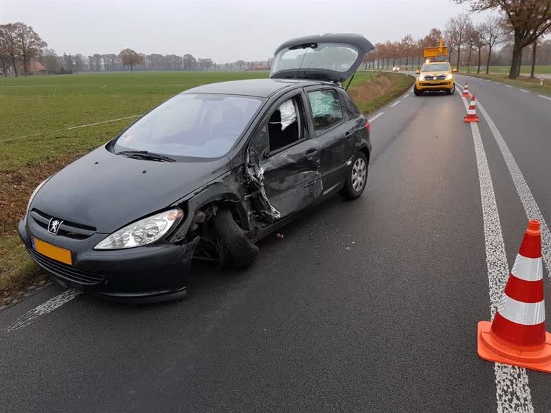 Het ongeluk gebeurde rond 08.30 uur op de Misterweg in het buitengebied van het buurtschap Miste. De schade aan de auto was groot. Een ambulance kwam ter plaatse, maar na controle hoefde geen van de inzittenden mee naar het ziekenhuis.