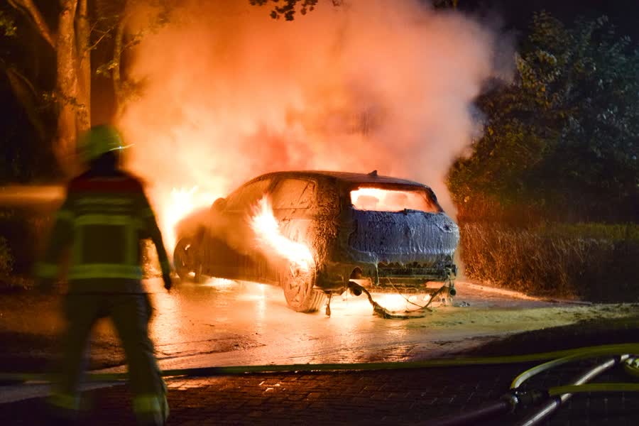 Auto gaat in vlammen op in Doetinchem, vermoedelijk brandstichting
