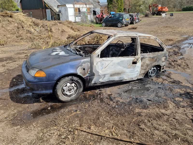 Een aantal jongeren was rond 13.45 uur met de auto aan het crossen op een stuk land aan de Veldkamperstraat. De uitlaat van het voertuig werd daarbij dusdanig heet, dat de aanwezigen besloten om water te halen om het object af te koelen. Toen ze terugkwamen, bleek de auto in brand te zijn gevlogen. De jongeren hebben vervolgens een tuinslag gepakt om het vuur te blussen.