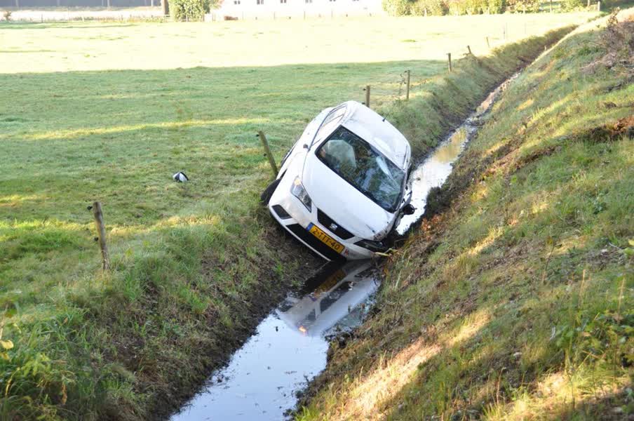 Auto in sloot en gewonde na botsing Haarlo