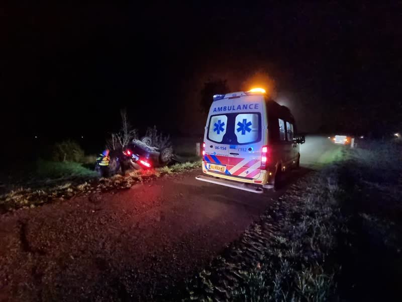 Het eenzijdige ongeval gebeurde rond 19.00 uur op de Veenweg. De automobilist reed vanuit Varsseveld in de richting van Heelweg toen het misging. In de bocht kwam het voertuig met een wiel in de berm terecht. De bestuurder maakte een stuurcorrectie, waardoor de auto in de slip raakte en aan de linkerkant in de sloot belandde. Het voertuig is ook eenmaal over de kop geslagen.