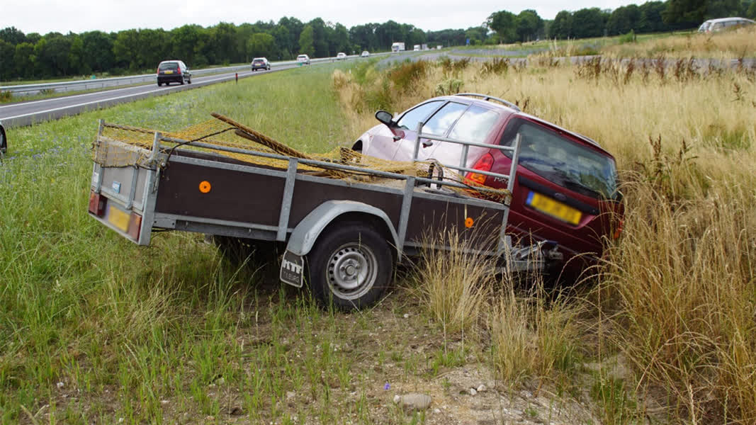 De bestuurder die er direct achter reeed, reed door, die daarachter stopte wel om te helpen. De man bleek niet gewond. De aanhanger en wagen moesten worden afgesleept. Het overige verkeer ondervond geen hinder van het ongeluk.