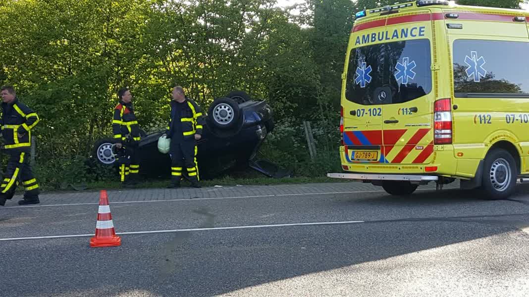 Op de Bievankweg in Didam stond een rij met auto’s te wachten voor een rotonde. Een naderende bestuurster zag dit niet op tijd en is achterop de laatste auto gereden. Daarbij is haar voertuig op de kop in de berm van de weg beland.