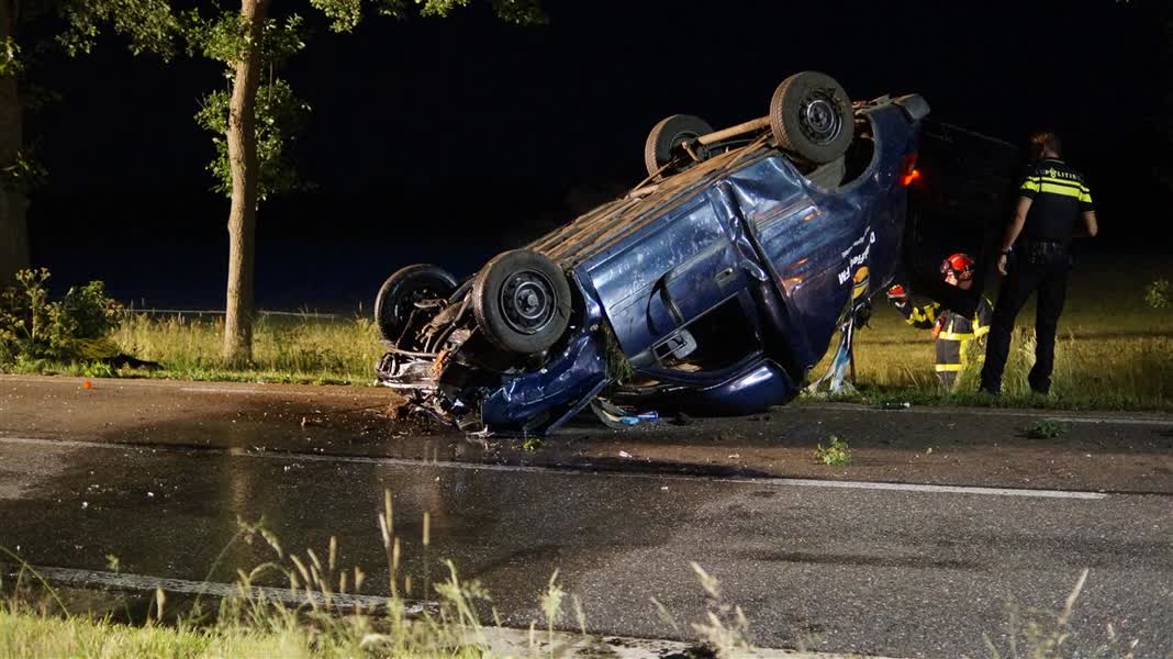 Auto over de kop bij eenzijdig ongeval Zelhem