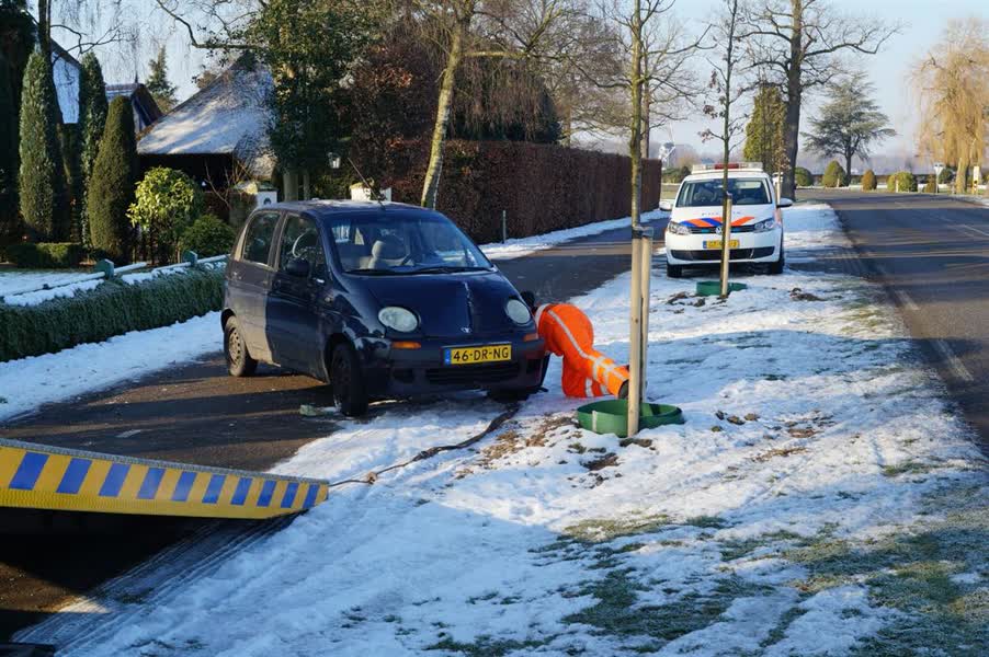 De vrouw raakte bij het ongeval wonder boven wonder niet gewond. Haar auto moest wel worden afgesleept.