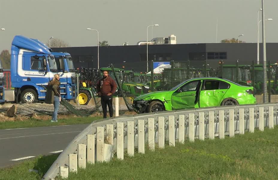 De bestuurder is bij het ongeval met de schrik vrijgekomen, maar zijn opvallend groengekleurde auto raakte wel zwaar beschadigd. Het voertuig moest worden afgesleept.