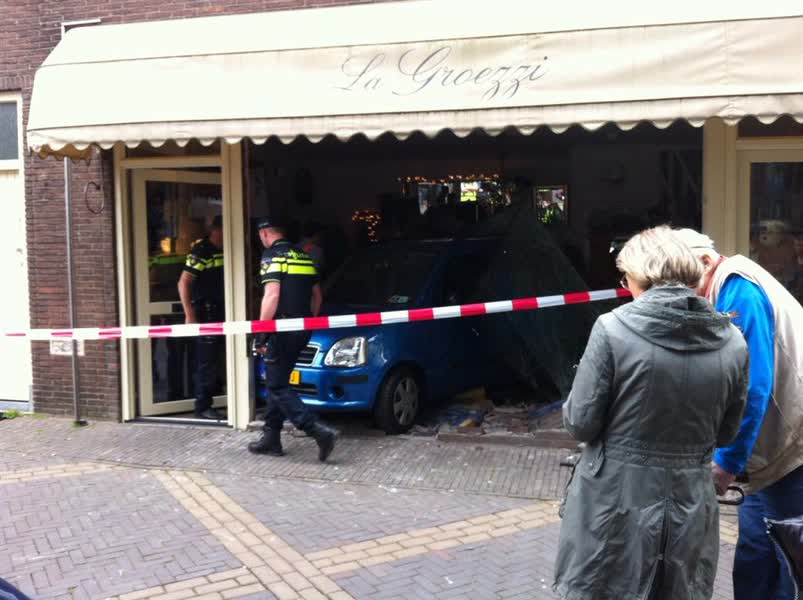 De bestuurder, een oudere man van 91 jaar, reed met de auto achteruit en ramde daarbij de gevel van kledingwinkel La Groezzi. De auto kwam midden in de winkel tot stilstand. De automobilist heeft de auto zonder verwondingen kunnen verlaten, laat een woordvoerder van de politie weten.