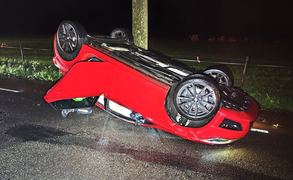 De politie doet nog onderzoek naar de exacte toedracht van het ongeval en of de bestuurder inderdaad onder invloed was. De auto is later weer op zijn wielen gezet en afgevoerd.