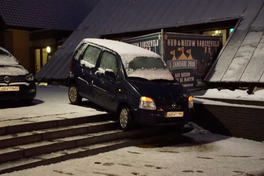 De bestuurder poogde omstreeks 17:15 uur met zijn voertuig over het trapje bij het Borchuus heen te rijden. Hij kwam vast te staan en kon de auto zelf niet meer bevrijden. Het is niet bekend hoe de auto uiteindelijk van het trapje is afgehaald.