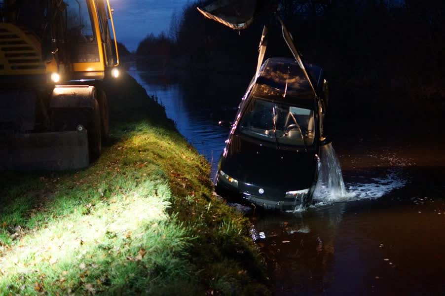 Bergingsdiensten hadden moeite om de auto uit het water te halen. Na twee uur werd besloten de hulp in te roepen van een lokale loonwerker die met een kraan ter plaatse kwam. Het gebruikelijke bergingsvoertuig kreeg de auto namelijk niet uit het water getild. De kraan van de loonwerker lukte dat wel.