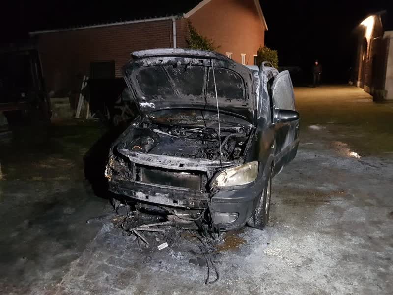 Door het vuur raakten zowel de voorkant als de binnenkant van de auto beschadigd. Het voertuig moet total loss worden beschouwd.