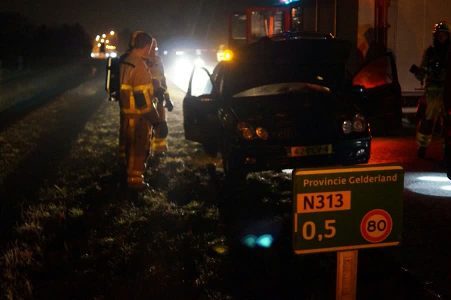 De bestuurder reed op de N313 toen zijn auto in de brand vloog. Het vuur ontstond in de motorkap van het voertuig. Een voorbijganger merkte de brandende auto op en is doorgereden naar een benzinestation om een poederblusser te halen. Samen met de bestuurder heeft hij het vuur kunnen blussen. De brandweer is ter plaatse gekomen om een controle te doen, maar deze kon weer vertrekken omdat het vuur gedoofd was.