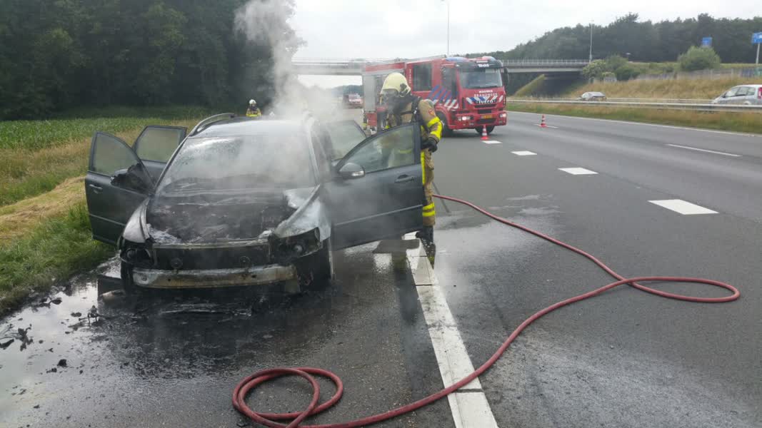 De auto is inmiddels afgesleept. Het verkeer op de snelweg kon door de autobrand een tijdlang slechts van één rijbaan gebruik maken.