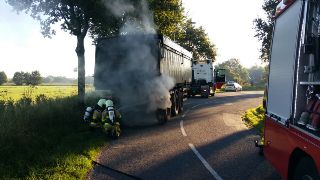 De brandweer kwam ter plaatse om de brand te blussen. Hoogstwaarschijnlijk moet de oplegger eerst gelost worden voor deze geborgen kan worden.