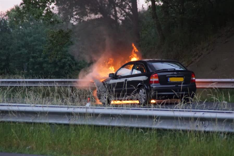 Een auto is zondagmiddag in brand gevlogen op de snelweg A18 tussen Doetinchem en Varsseveld. Niemand raakte gewond door het vuur.