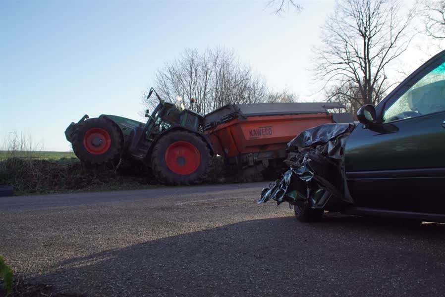 Het ongeval vond rond 08.00 uur plaats op de Boerijendijk. Door onbekende oorzaak kwam de automobilist in de bocht in aanraking met de trekker, waarbij de auto flink beschadigd raakte. De trekker schoot door de aanrijding naar rechts en eindigde uiteindelijk in een nabijgelegen sloot.