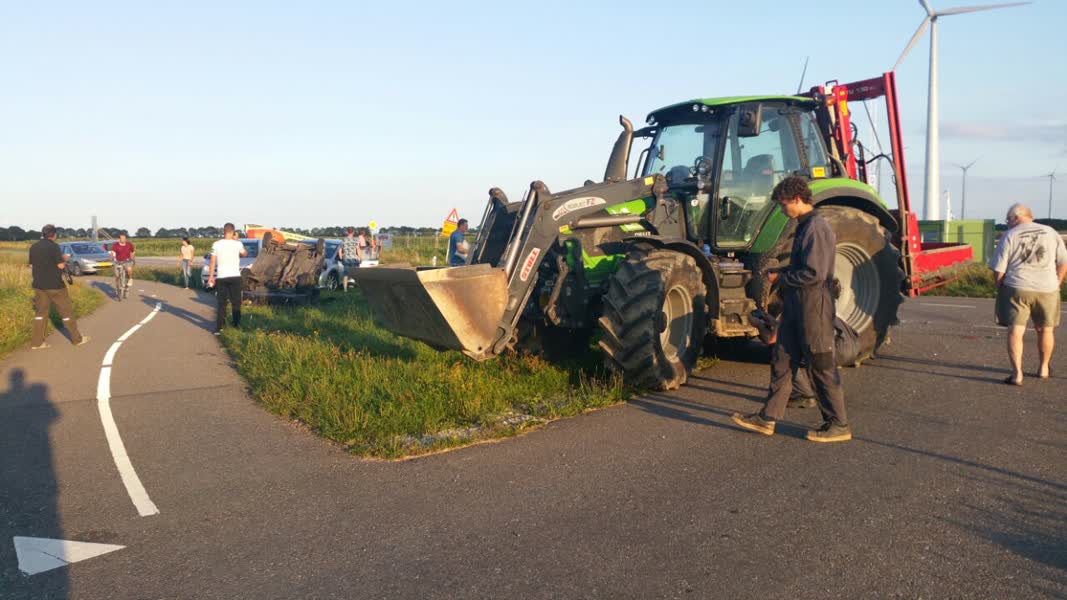 De aanrijding vond omstreeks 19.00 uur plaats op de Eerlandsestraat. De automobilist wilde inhalen maar zag daarbij de link afslaande tractor over het hoofd. Een aanrijding was op dat moment niet meer te voorkomen. De auto sloeg na de aanrijding over de kop en belandde naast de weg.