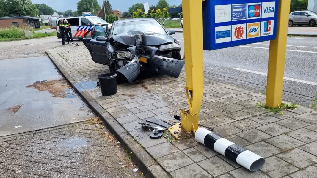 Het eenzijdige ongeval vond rond 14.30 uur plaats op de Hamelandroute N313. De bestuurder kwam vanuit de richting Duitsland aanrijden toen hij door onbekende reden in een bochtje de macht over het stuur verloor. Hij raakte een paaltje en botste vervolgens op een zuil met benzineprijzen bij het nabijgelegen pompstation.