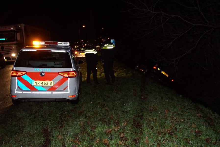 De politie is bij het voertuig gebleven tot een bergingsdienst de wagen uit de sloot haalde.
