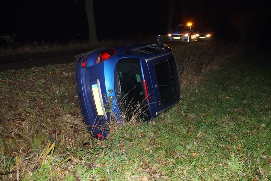 De hulpdienst arriveerde niet veel later om de auto uit de sloot te takelen. Het is onbekend hoe groot de schade van het voertuig is.