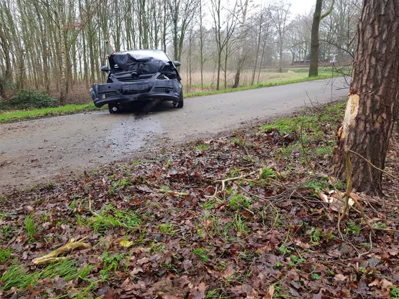 De weg is een tijdlang afgesloten geweest voor het overige verkeer. De auto moest zwaar beschadigd worden afgesleept.