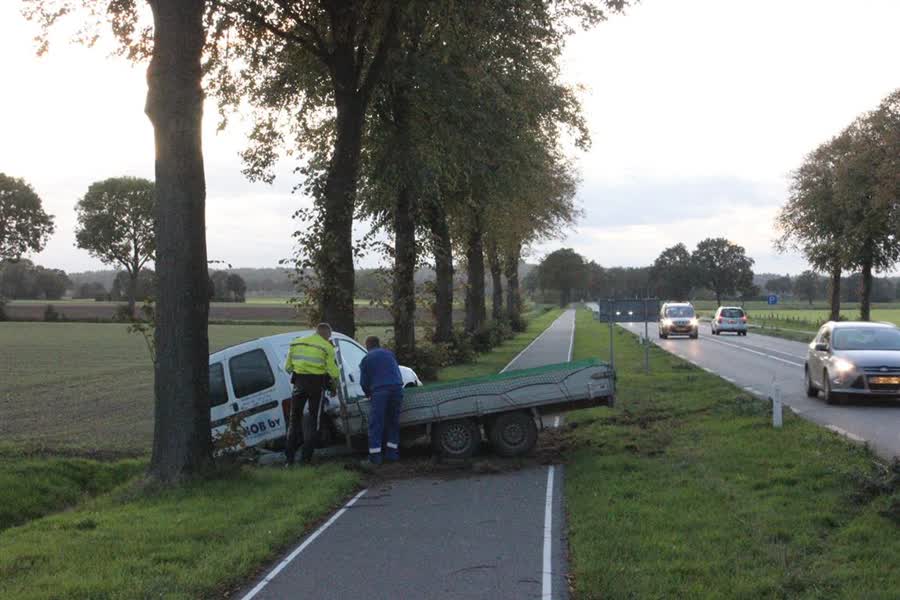 Het ongeluk gebeurde maandagmiddag rond 17.00 uur op de Terborgseweg. Een automobilist reed richting Etten en slingerde van de weg af. Hij belandde met zijn busje en aanhanger vervolgens in de berm. Het voertuig ondervond daarbij behoorlijke schade.