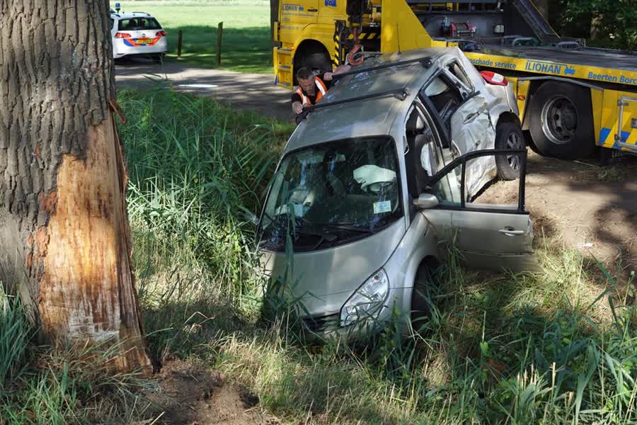 Een auto is zaterdagmiddag rond 14.15 uur is op de Varsseveldseweg (N330) bij Halle op de kop in de ...