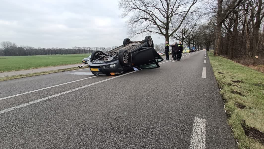 Automobiliste belandt op de kop midden op de weg in Groenlo