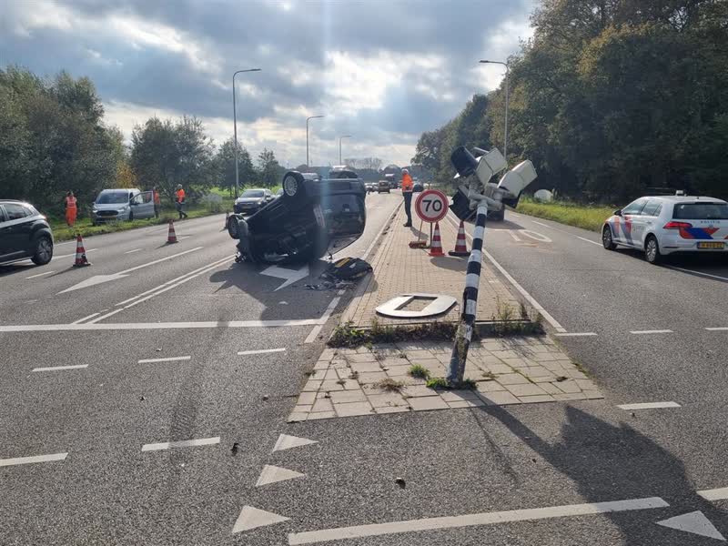 Een automobiliste is woensdagmiddag op de kop terecht gekomen op een kruising in Doetinchem. De bestuurster van dit voertuig is met onbekend letsel naar het ziekenhuis gebracht.