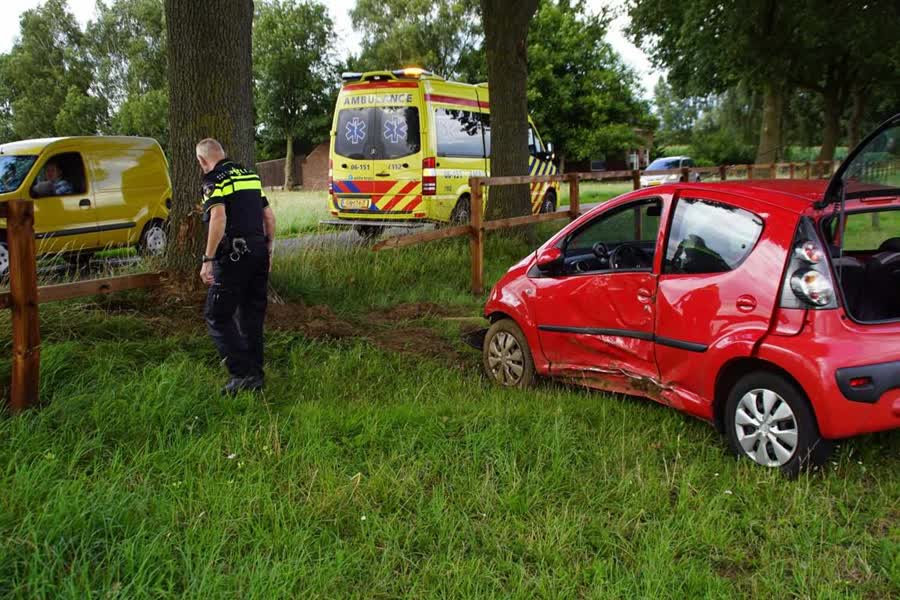 De vrouw is door ambulancepersoneel gecontroleerd, maar hoefde niet mee naar het ziekenhuis. De auto is afgesleept.