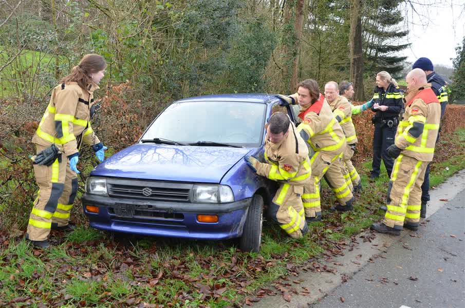 De vrouw kwam met haar auto in de struiken terecht en werd door de gealarmeerde ambulancebroeders gecontroleerd op verwondingen, maar bleek ongedeerd. Haar auto kwam er minder goed vanaf, die raakte door het ongeval zwaar beschadigd.