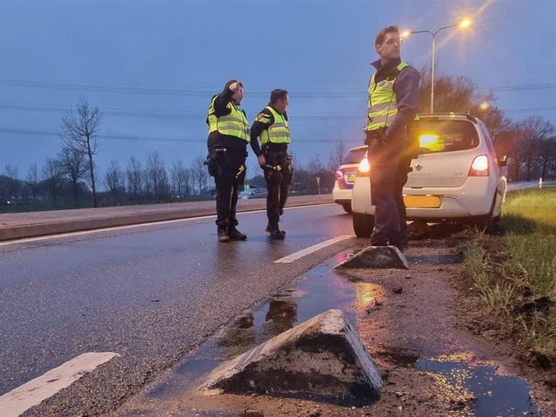 Een auto is dinsdagavond vast komen te zitten op betonnen obstakels aan de kant van de weg op de Zeddamseweg in Etten. De bestuurster is met de schrik vrij gekomen.
