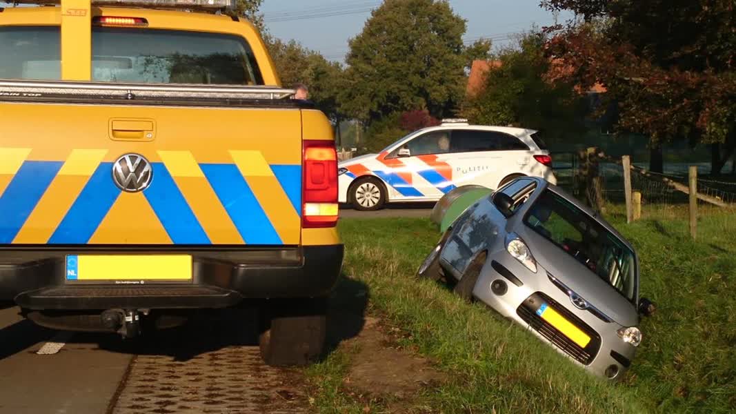 De auto moest na het incident worden afgesleept. Hulpdiensten kwamen ter plaatse om de vrouw uit de auto te halen, maar ze raakte niet gewond.