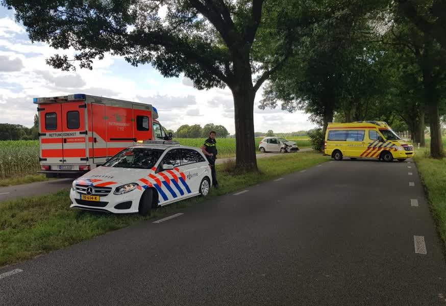 Een automobiliste is dinsdagmiddag tegen een boom gereden in het buitengebied van Aalten. Twee personen zijn na het ongeval overgebracht naar het ziekenhuis.