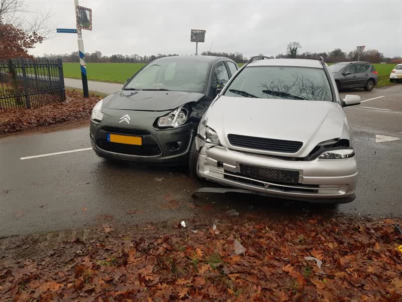 Twee auto’s zijn donderochtend op elkaar geknald op een kruising nabij Heelweg. Geen van de inzittenden is gewond geraakt bij de botsing.