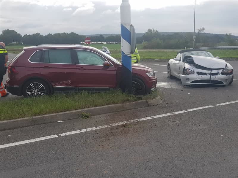 Het ongeval vond plaats rond 15.00 uur op kruising van de Wijnbergseweg en de Europaweg. Een automobiliste wilde linksaf de A18 op gaan en zag een auto over het hoofd, waarna de aangereden auto tegen een paal tot stilstand kwam. Bij controle door het toegesnelde ambulancepersoneel bleek dat beide automobilisten geen verwondingen hebben opgelopen bij het ongeval.