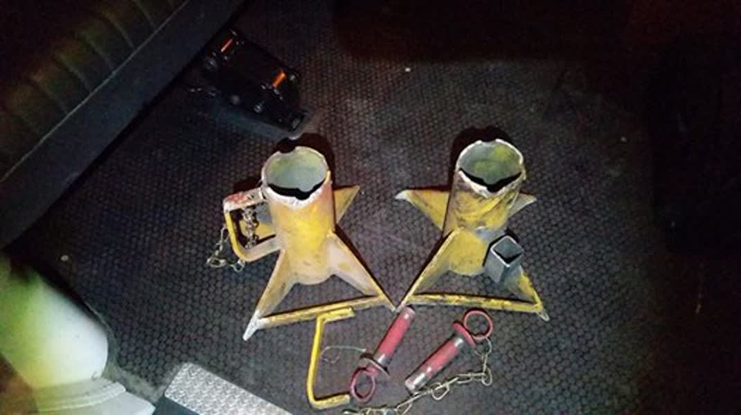Het ongeval gebeurde omstreeks 19:25 uur op de Eibergseweg, nabij de afslag naar de Schurinkweg. De twee automobilisten zagen de poten, van elk enkele kilo’s metaal, over het hoofd en reden ertegenaan. De politie laat weten dat de metalen poten vermoedelijk van een voertuig zijn gevallen.