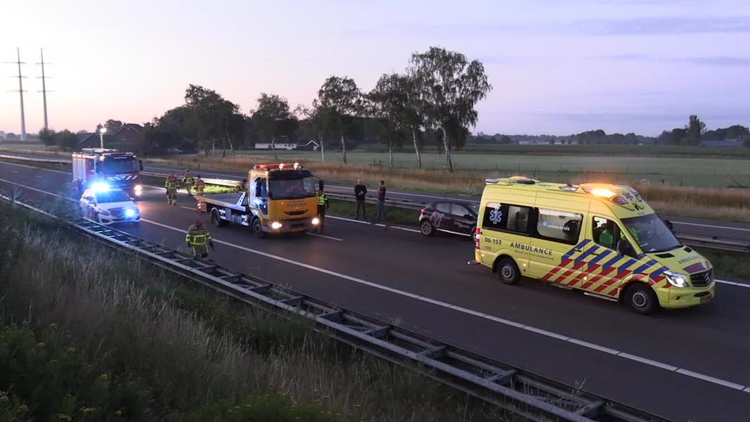 De voertuigen reden zaterdagochtend rond 04.45 uur op de A18 in de richting van Wehl. Volgens de politie begon de zwarte auto te tollen bij een inhaalactie. Hij ramde daarbij de grijze wagen, die uiteindelijk op de vluchtstrook eindigde. De slingerende auto knalde tegen de middelste vangrail aan en kwam daar tot stilstand. Beide voertuigen raakten flink beschadigd door de botsing en moesten worden afgesleept.