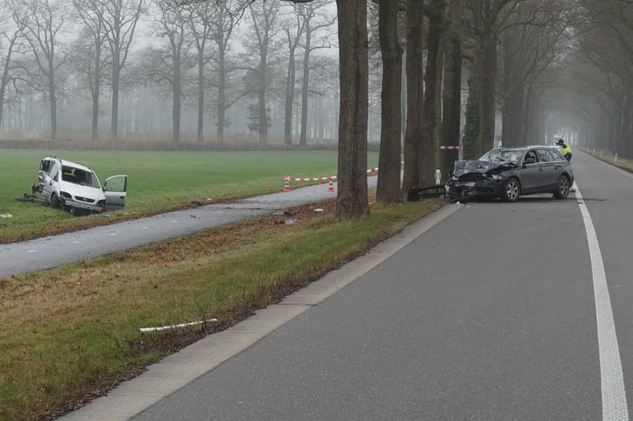 Een van de bestuurders werd door de klap uit zijn auto geslingerd. Hij is met onbekend letsel per ambulance afgevoerd naar het ziekenhuis. De bestuurder van de andere auto kwam met de schrik vrij. De weg is een tijdlang afgesloten geweest door het ongeval.