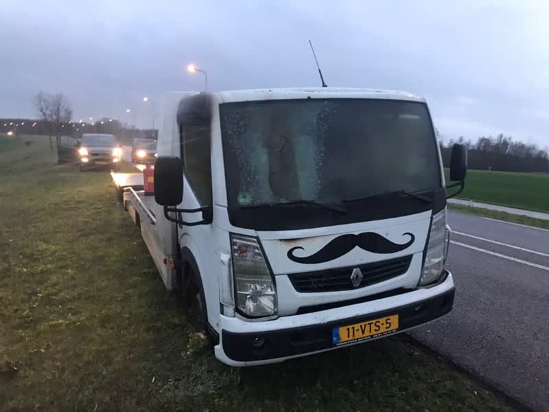 De cabine van de autotransporter is volledig in rook opgegaan door de vlammen. Mogelijk was kortsluiting oorzaak van de brand. De wagen moest worden afgesleept.