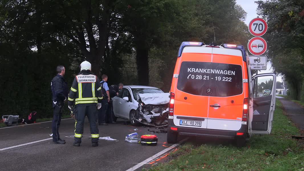 Het ongeval vond rond 15.45 uur plaats op de Reeser Straße L7. Een 32-jarige automobiliste uit Emmerich kwam door onbekende oorzaak op de verkeerde weghelft terecht. Een daar rijdende ambulance kon de auto van de vrouw niet meer ontwijken met de aanrijding tot gevolg. Hulpdiensten rukten grootschalig uit na het ongeval, waarbij onder meer een Duitse en een Nederlandse traumahelikopter werden opgeroepen.