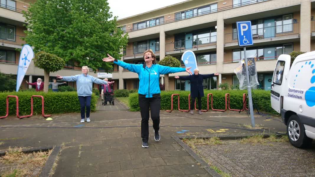Op drie locaties in de stad is Sportservice Doetinchem tijdens de coronacrisis gestart met balkongym op muziek. Door vanaf de straat oefeningen uit te beelden, komen bewoners die door de coronacrisis hun vaste beweegmomenten moeten missen toch in actie.