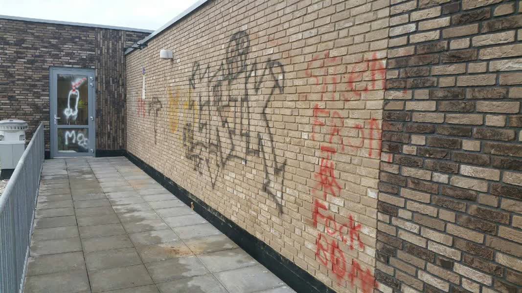 "Daar zijn we natuurlijk vreselijk kwaad en boos en teleurgesteld over, dat zo'n prachtig nieuw gebouw met graffiti bespoten wordt", aldus een woedende directeur Hans Epping. "Wat er op staat is ook onleesbaar en niet te herleiden tot iets, dus puur vandalisme. O wee als ik te horen krijg wie dat gedaan heeft. De politie zit er bovenop." De school heeft extra veiligheidsmaatregelen genomen, om in de toekomst dergelijk vandalisme te voorkomen.
