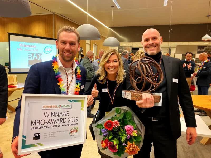 Bax Advocaten Belastingkundigen uit Doetinchem is de winnaar geworden van de MBO-Award 2019. De Maatschappelijk Betrokken Ondernemen Award werd dinsdagavond voor de zevende keer uitgereikt tijdens het Meet&Match evenement, georganiseerd door de Doetinchemse Uitdaging.