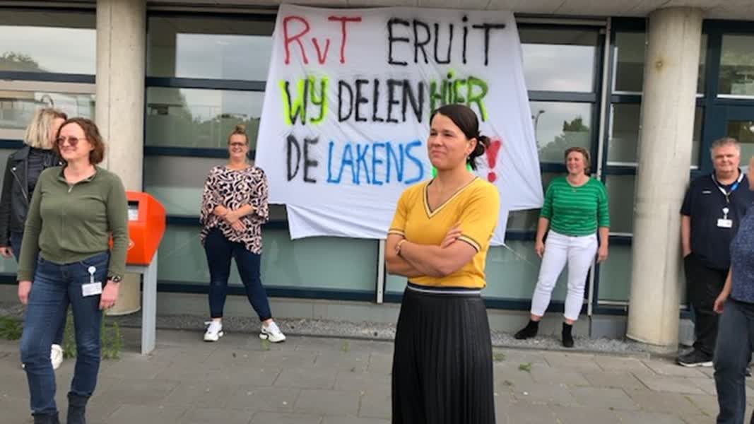 "Anders kunnen we ons recht nooit meer terughalen als we dat willen", aldus voorzitter Ineke Brundel van de belangenvereniging over de eis van Santiz om alleen in gesprek te gaan over een eigen ondernemingsraad als de vereniging niet naar de rechter stapt. 900 van de 1100 medewerkers van het SKB hebben zich inmiddels aangesloten bij de belangenvereniging, meldt Omroep Gelderland. De belangenvereniging hing dinsdagmiddag spandoeken op aan de gevels van het ziekenhuis in Winterswijk, om hun onvrede kracht bij te zetten. Zo moest de Raad van Toezicht het ontgelden: "RvT eruit, wij delen hier de lakens uit!"