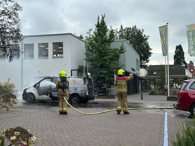 Bestelbus in vlammen op bij gemeentehuis in Aalten