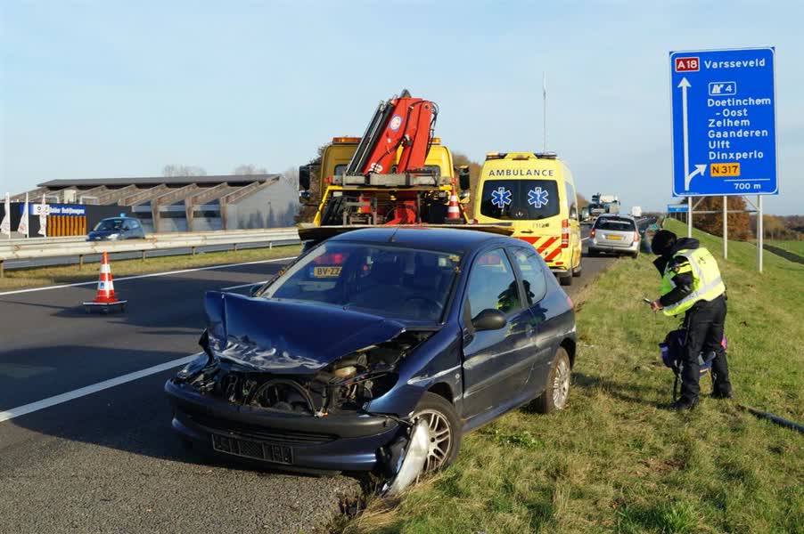 Het ongeval gebeurde omstreeks 14.15 uur in de richting van Varsseveld. De bestuurder kwam door nog onbekende oorzaak tegen de vangrail aan. De man is vanwege zijn verwondingen meegenomen door de ambulance.
