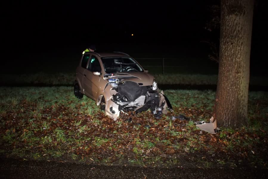 Een automobilist is woensdagavond tegen een boom gebotst op de weg tussen Borculo en Beltrum. De auto raakte daarbij flink beschadigd.